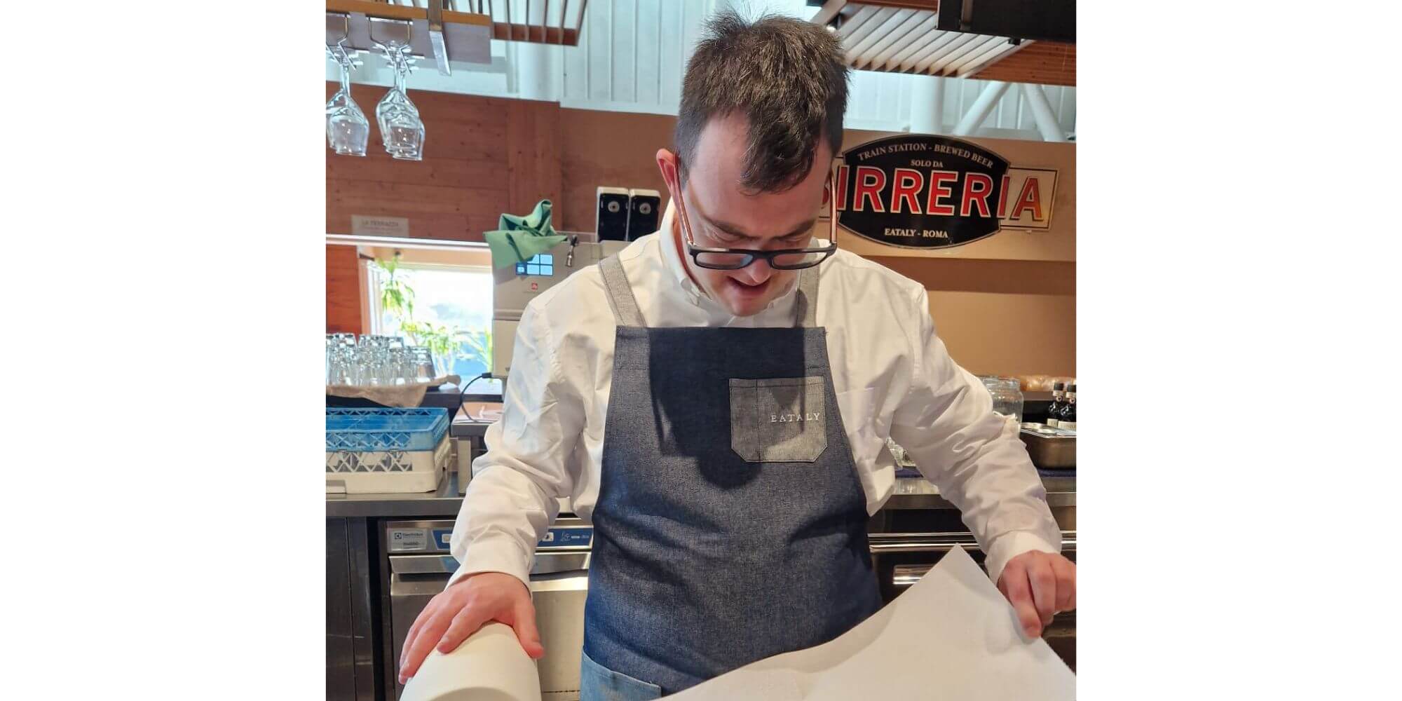 Firmato il contratto di lavoro a tempo determinato di 6 mesi da Eataly Ostiense per Jacopo Mariani, giovane di AIPD Roma. Jacopo svolgerà la mansione di addetto al bar come personale di supporto.