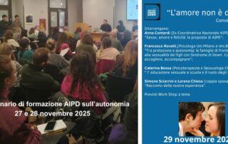 27 e 28 novembre, 2° seminario di formazione AIPD 2025 sull’autonomia. A seguire il 29 una giornata dedicata alla sessualità e affettività. Iscrizioni aperte fino al 14 novembre