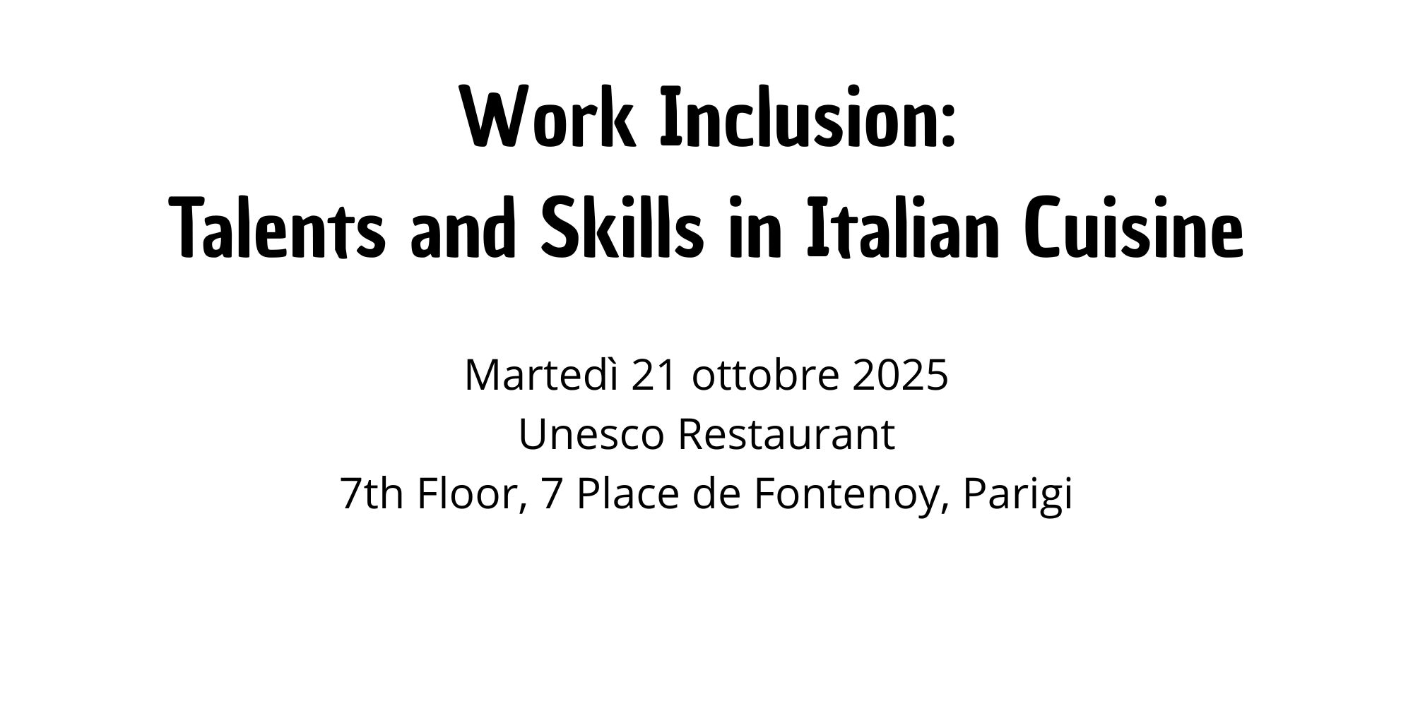Martedì 21 ottobre 2025, a partire dalle 19.00, si terrà presso l’Unesco Restaurant – 7th Floor, 7 Place de Fontenoy, Parigi, l’evento “Work Inclusion: Talents and Skills in Italian Cuisine”, promosso dal Ministro per le Disabilità Alessandra Locatelli.